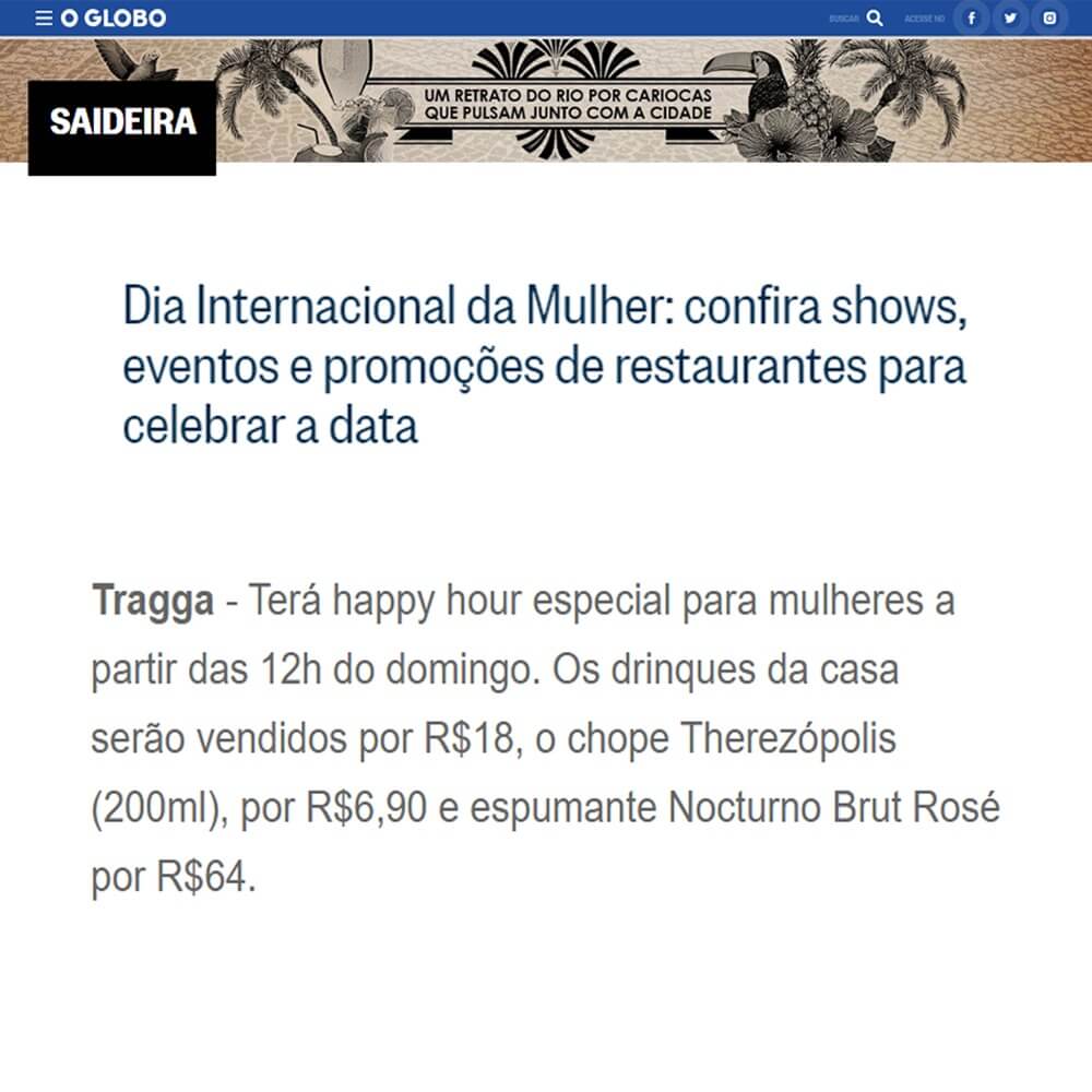 ImprensaCOLUNA SAIDEIRA – O GLOBO Confira na íntegra VEÍCULO: O Globo. Matéria na coluna Saideira sobre promoções de restaurantes para celebrar o Dia da Mulher.