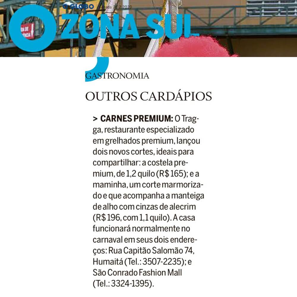 ImprensaO GLOBO ZONA SUL – COLUNA GASTRONOMIA VEÍCULO: O Globo Zona Sul. Coluna Gastronomia. Carnes Premium: Costela Premium e Maminha.
